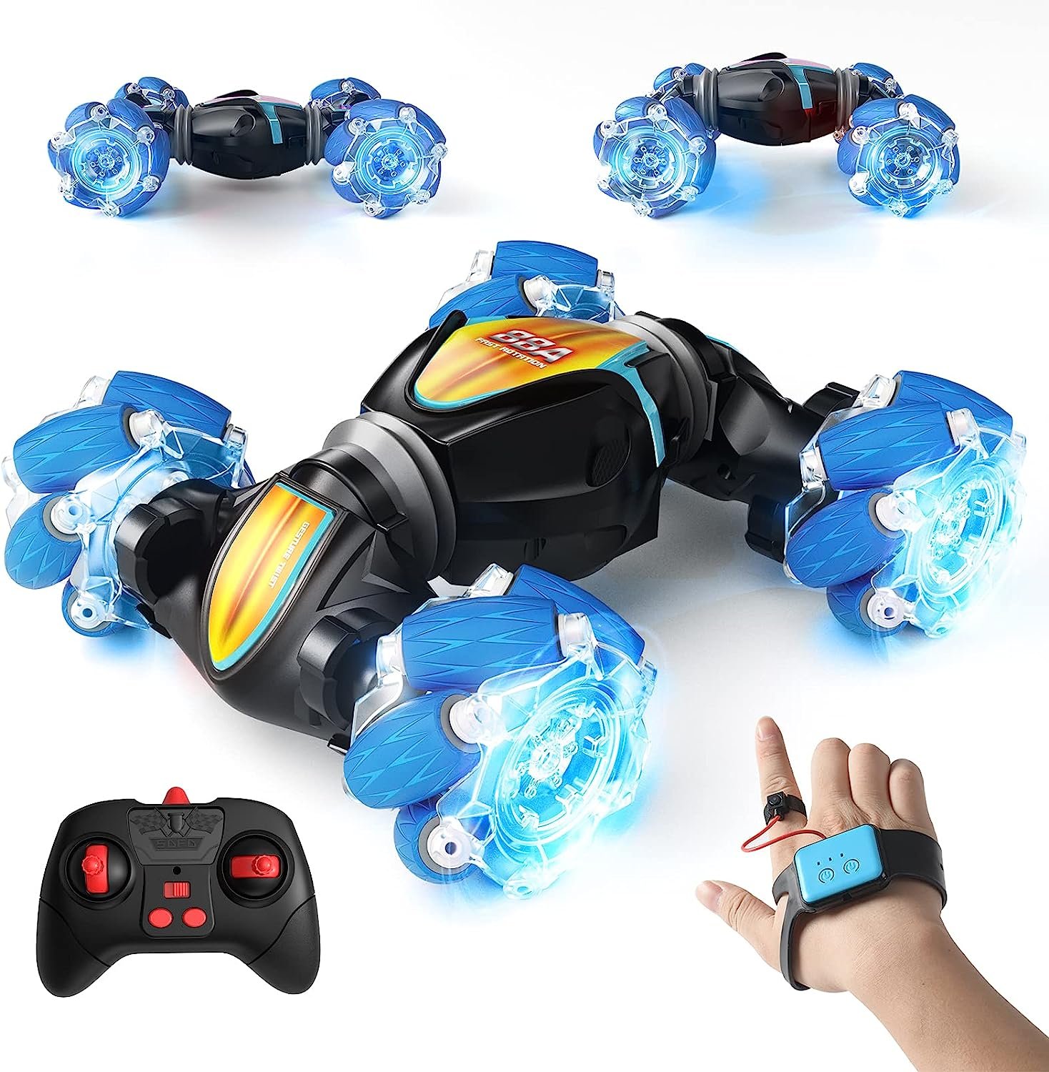 Offre des cascades dignes d’un spectacle avec cette voiture cascadeuse 4x4. Son châssis réversible roule des deux côtés pour enchaîner flips, spins 360° et drift grâce aux roues omnidirectionnelles. Les enfants pilotent au choix avec la télécommande classique ou la montre gestuelle qui suit les mouvements de la main pour une conduite ultra fun. Les LED donnent un look futuriste et la musique met l’ambiance (désactivable pour jouer en silence). Conçue pour le salon comme pour l’extérieur, elle résiste aux chocs du quotidien et se recharge par USB pour repartir rapidement à l’action.